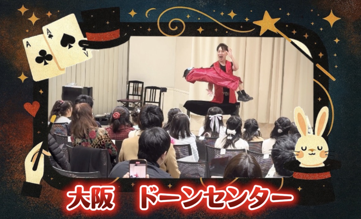大阪・ドーンセンターにて開催されたピアノ教室発表会後の余興として、マジシャンMASAが出演させていただきました。発表会を頑張ったお子様たちへのサプライズ演出として、会場は大きな歓声と拍手に包まれました。