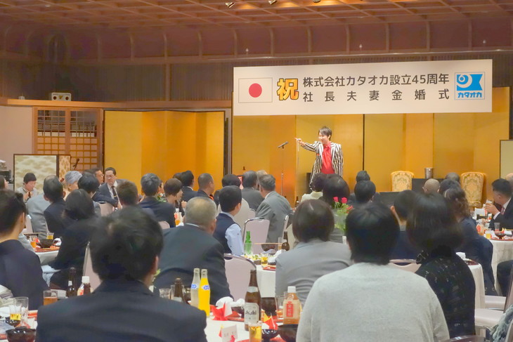 広島県にて開催された金婚式パーティーに、出張マジシャンとして出演させていただきました。 今回は、ご夫婦の大切な節目を祝う特別な会として、西山別館様にて多くのご家族・ご親族が集まる、心温まるパーティーでした。