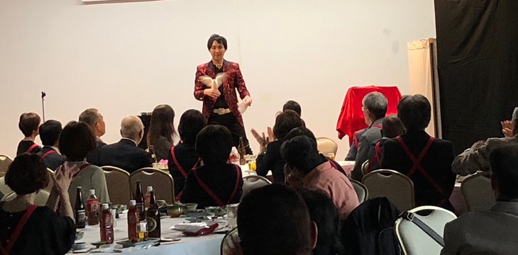 先日、広島県にて開催された還暦祝いパーティーにて、マジシャンMASAのマジックショーをご依頼いただきました。 ご還暦を迎えられた同級生が集まる特別な同窓会に、驚きと笑顔を届けるエンターテインメントとしてマジックショーをお楽しみいただきました。