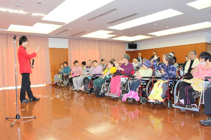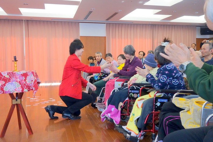 途中からは、ステージから降りて利用者様のすぐそばで行うマジックも披露。 距離が近い分、驚きと喜びがよりダイレクトに伝わります。