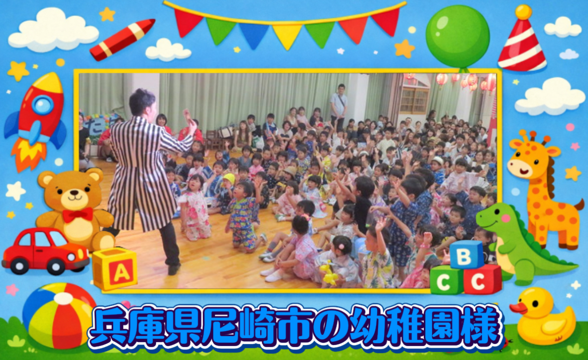 同じ内容を繰り返すのではなく、学年ごとに演出やテンポを調整することで、 3回公演でも常に新鮮な空気でショーを進行しました。 短時間でも満足度の高い幼稚園イベントとなりました。