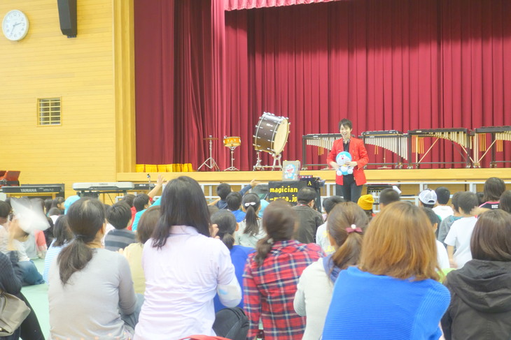 今回は、明石市内の小学校よりご依頼をいただき、体育館で全校児童に向けたマジックショーを実施しました。