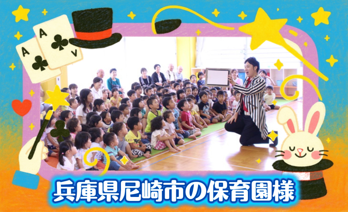 兵庫県尼崎市にある保育園にて、園内イベントとして 子どもたち向けのマジックショーを実施しました。 園児の皆さんが目を輝かせながら楽しんでくれる、笑顔あふれる時間となりました。