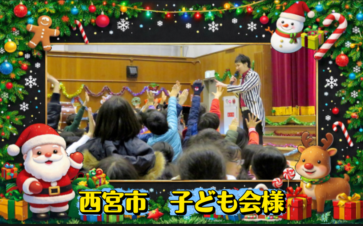 兵庫県西宮市の小学校にて開催された、クリスマス子ども会イベントに マジシャンMASAが出演しました。 会場にはたくさんの子ども達が集まり、クリスマスムード満点の中で 楽しいマジックショーをお届けしました。