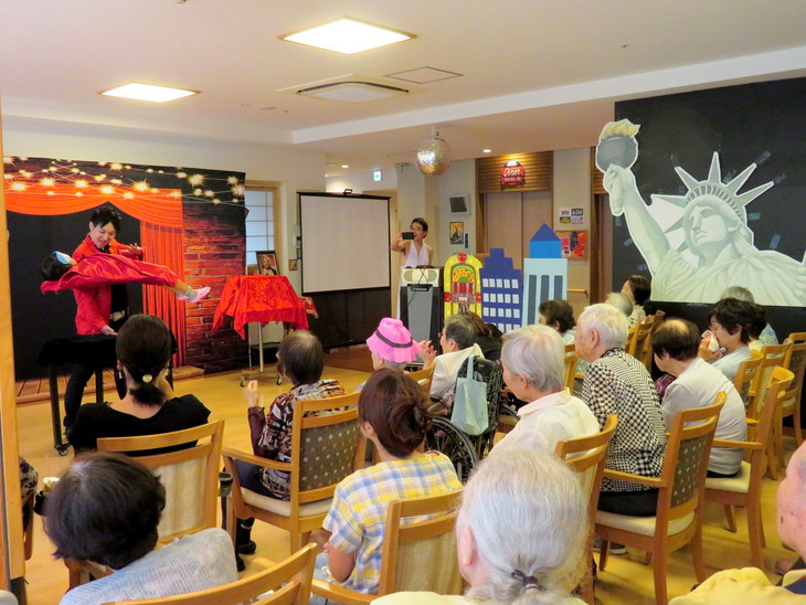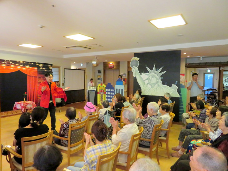 今回は大阪府八尾市にある介護施設「アプリ八尾」様にて、介護施設イベントとしてステージマジックショーを行いました。 ご利用者様に近い距離で楽しんでいただけるよう、見やすく・分かりやすく・参加しやすい内容で構成しています。