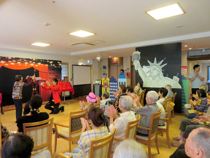 途中からは、ご利用者様にもご協力いただく参加型マジックを取り入れました。 目の前で起こる不思議な現象に、驚きと笑顔が広がり、会場全体が温かい雰囲気に包まれます。
