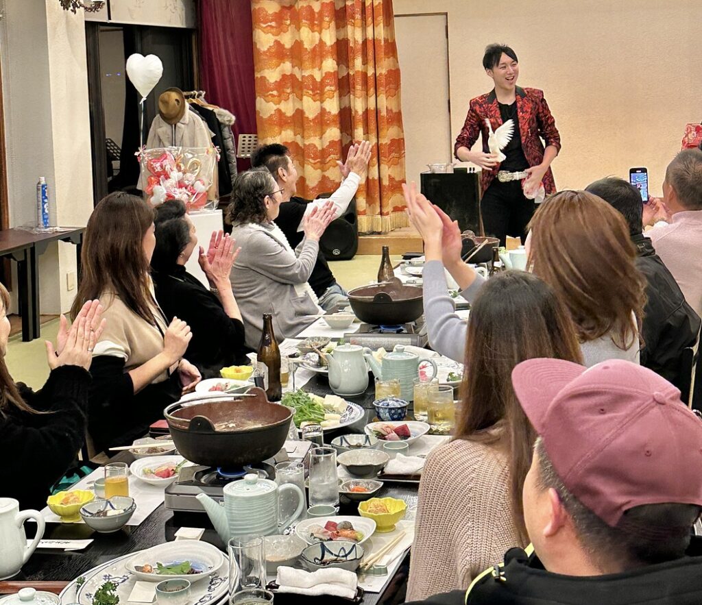 大阪府内にある福寿山魚捨にて開催された還暦祝いパーティーに、 マジシャンMASAがサプライズゲストとして出演しました。