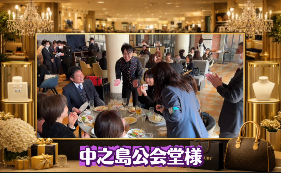 大阪・中之島公会堂にて、タワーマンションのコンシェルジュ様を招待した懇親会イベントに、出張マジシャンMASAをお呼びいただきました。 格式ある空間の中、各テーブルを回りながら行う至近距離のマジックで、驚きと笑顔に包まれたひとときとなりました。