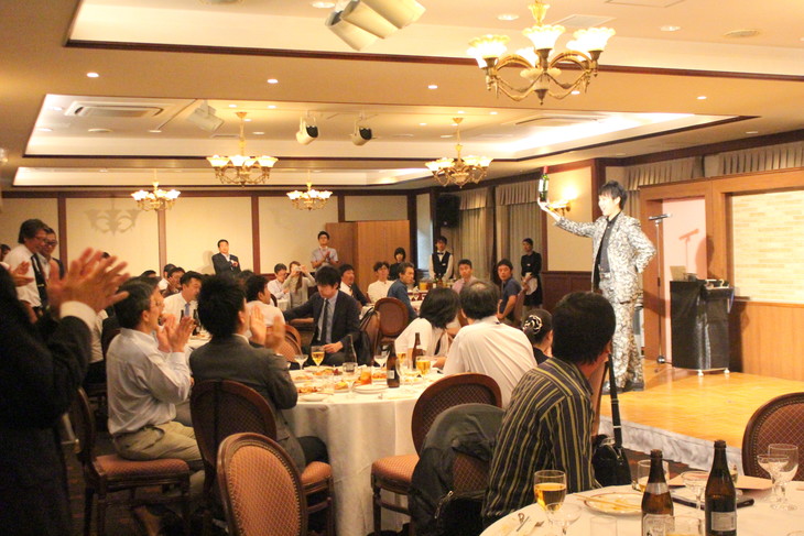 今回の企業パーティーでは、ステージ上での演出だけでなく、 お客様との距離が近い参加型マジックを中心に構成。 拍手や歓声が自然と広がり、会場全体が盛り上がる時間となりました。