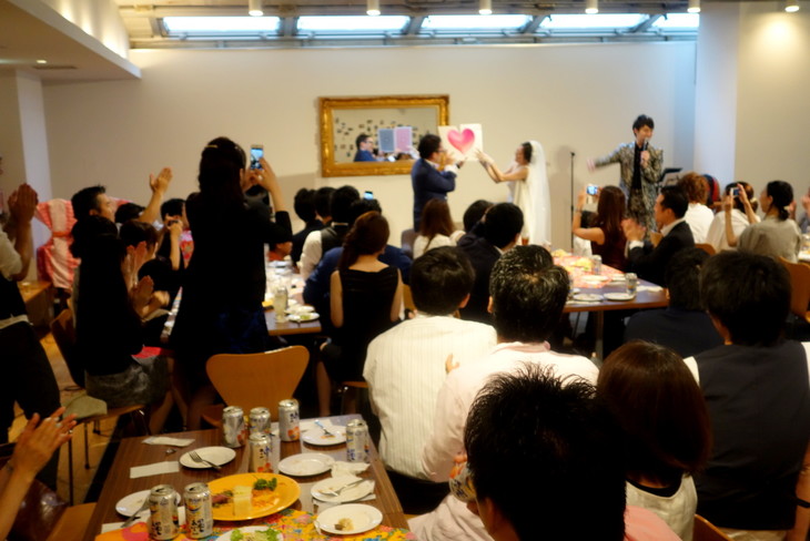 クライマックスでは、新郎新婦によるハートのサプライズが成功!