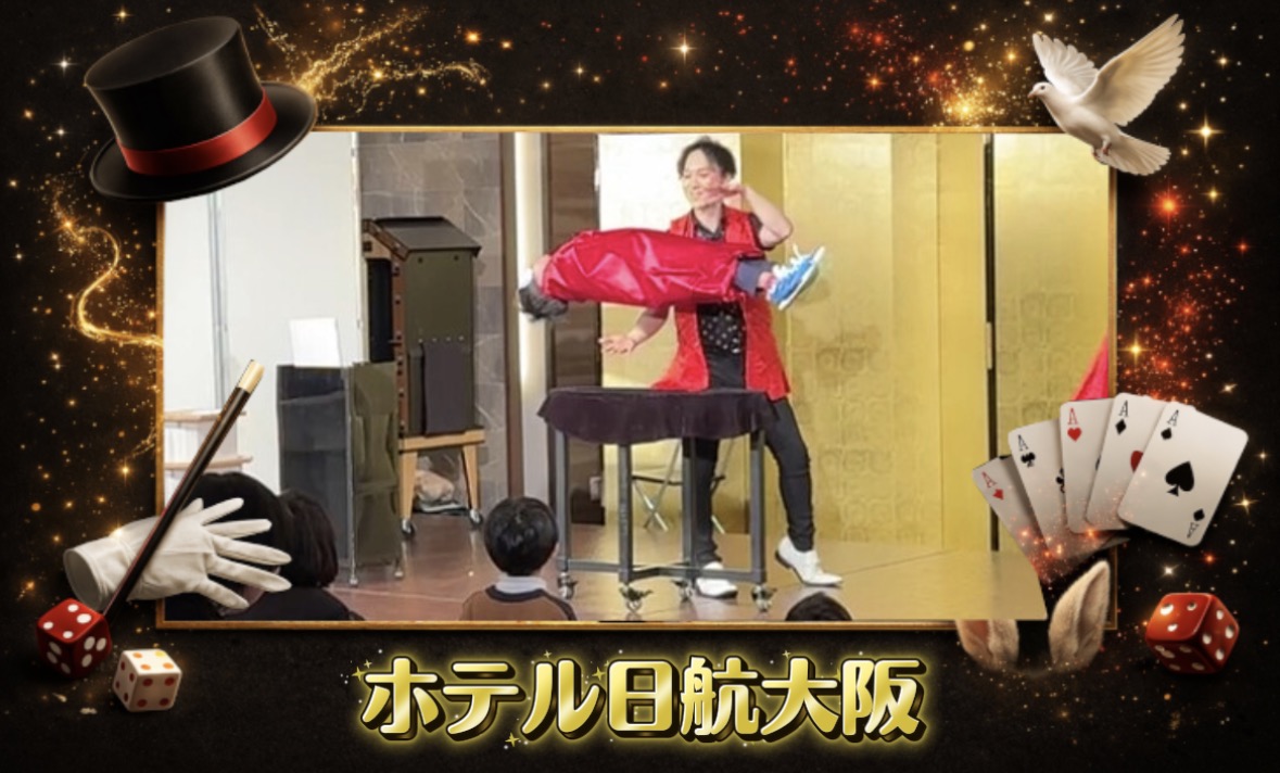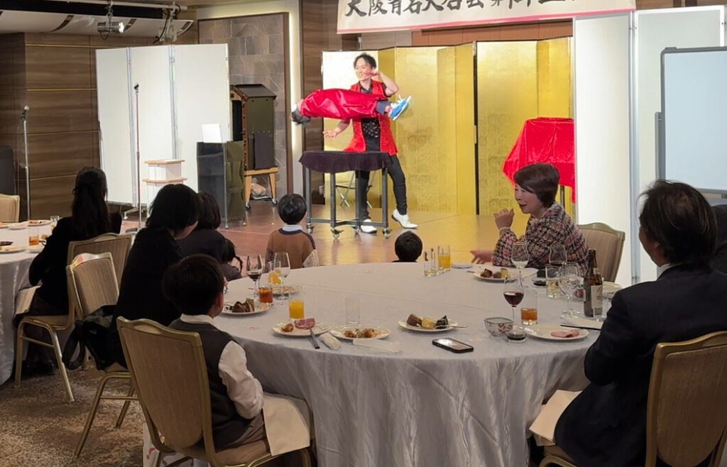 ホテル日航大阪にて開催された「大阪有名大店会パーティー」に マジシャンMASAが出演させていただきました。 華やかなステージ演出と参加型イリュージョンで、 会場は驚きと歓声に包まれる特別なひとときとなりました。