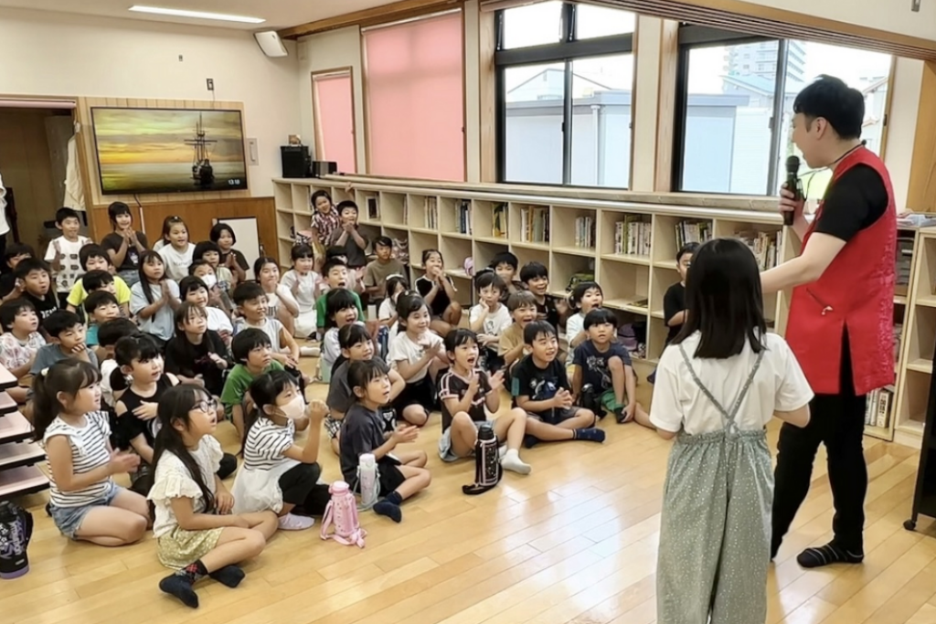 ショーがスタートすると、子どもたちはすぐにマジックの世界に引き込まれ、 「すごい!」「なんで!?」と大盛り上がり。 手を挙げて積極的に参加する姿がとても印象的でした。