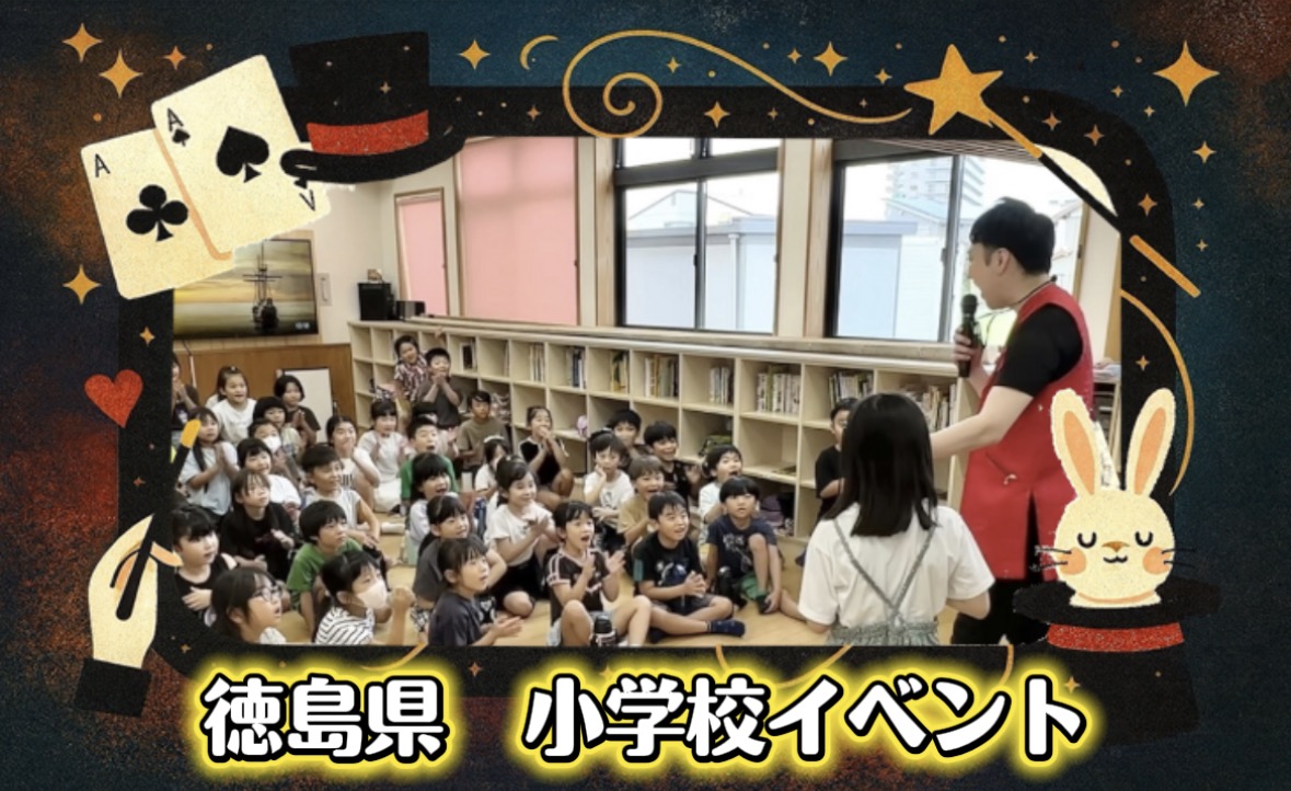 徳島県の小学校にて、放課後児童クラブイベントとしてマジシャンMASAのマジックショーを開催させていただきました。 昨年に続き、2年連続でお呼びいただき、本当にありがとうございます。 子どもたちの元気なリアクションと笑顔に包まれた、最高に盛り上がる時間となりました。
