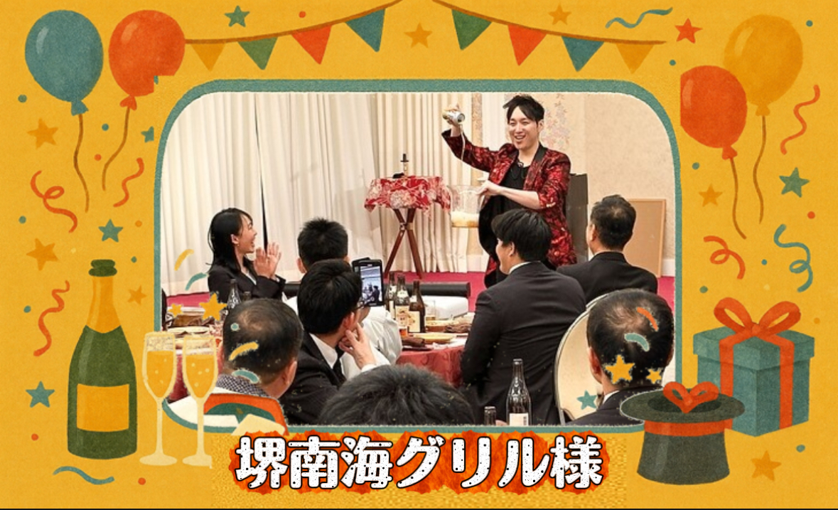 大阪・福寿山魚捨で還暦祝いパーティーにマジックショー出演